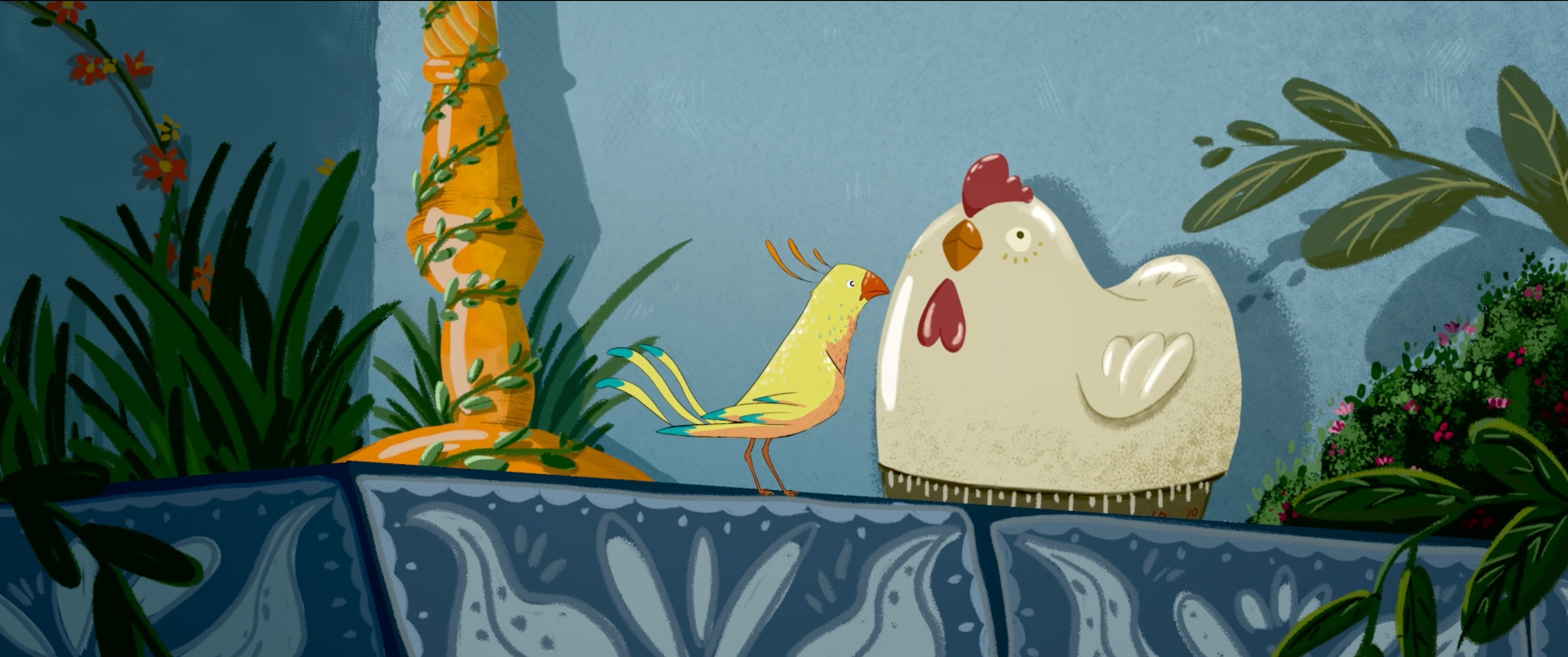 鯨魚寶寶與家人分離,探頭一望,發現了沉船的唯一倖存者-一隻養在籠裡的鳥。小小鳥與鯨魚一起在大海裡玩遊戲,忘記了流浪與孤獨。但當大海翻臉掀起巨浪,他們未來將何去何從?本片使用油漆顏料在玻璃上反覆添加與覆蓋,在創造與破壞間呈現生命轉瞬即逝、煙火般的魔幻情懷。