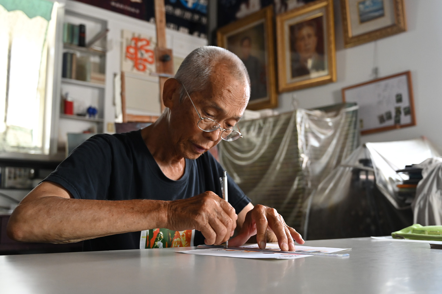 1980 — Joined the Ambassador Theater, apprenticing under Zhou Longyan alongside billboard painter Wang Chinghsin.