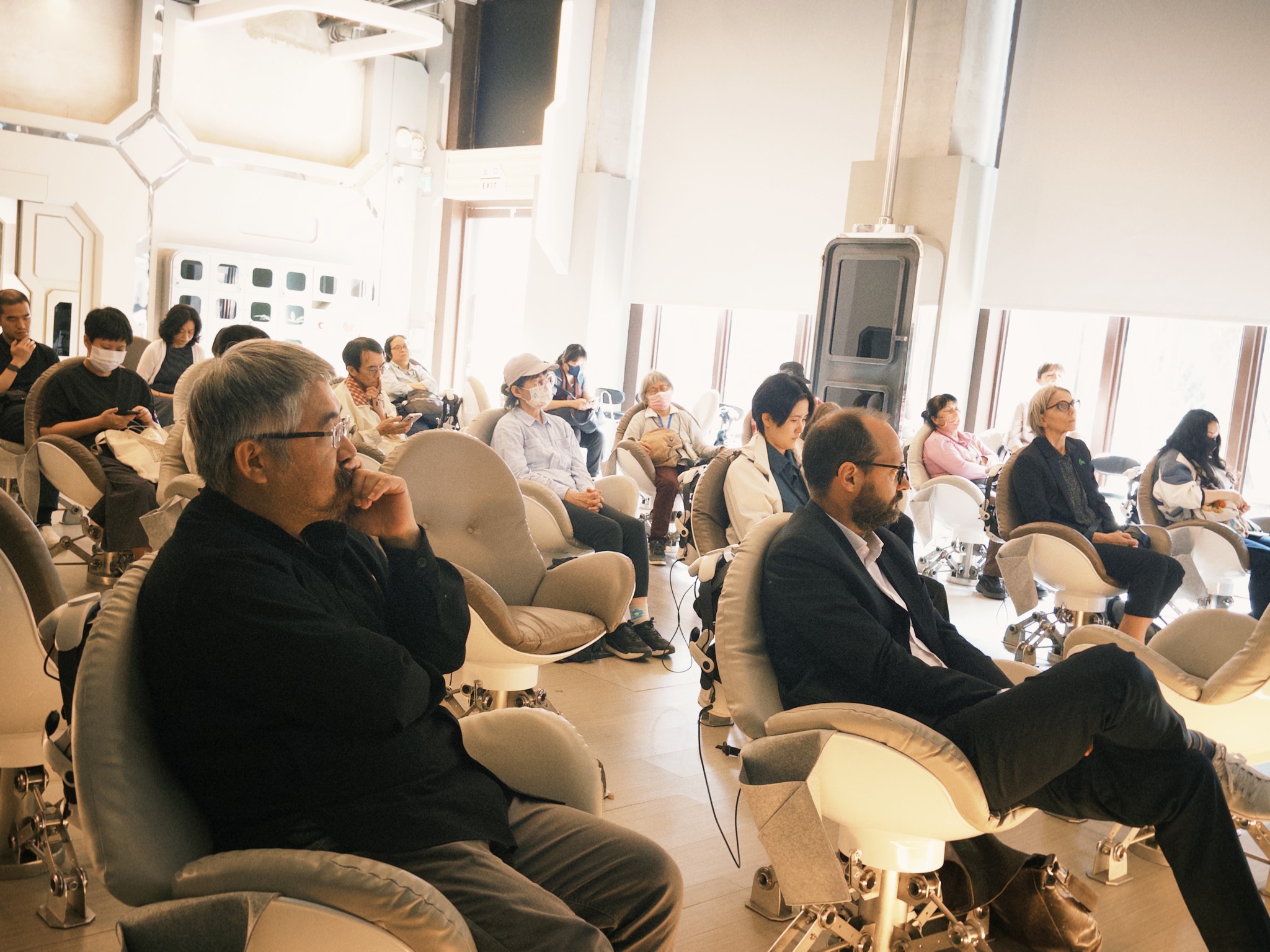 講者提到,不同於電影的線性敘事,VR創造的是一個可以被「進入」的世界,觀眾不再只是坐在外面觀看,而是被邀請走進場景之中,成為空間裡的一份子,與角色共處、互動,甚至影響故事的感受方式。也因此,「世界觀」成為VR創作最關鍵的核心,當觀眾願意相信自己真的在那個房間裡,故事才真正開始發生。
