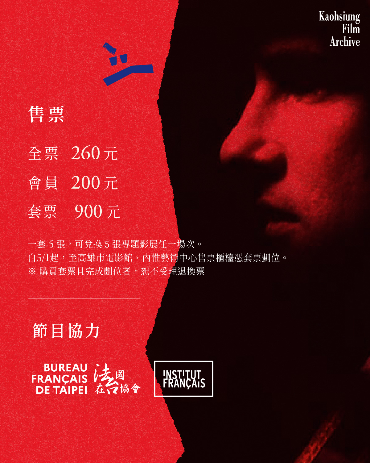 套 票 900 元/ 5張 (專題片單自由搭,可購買同部片)