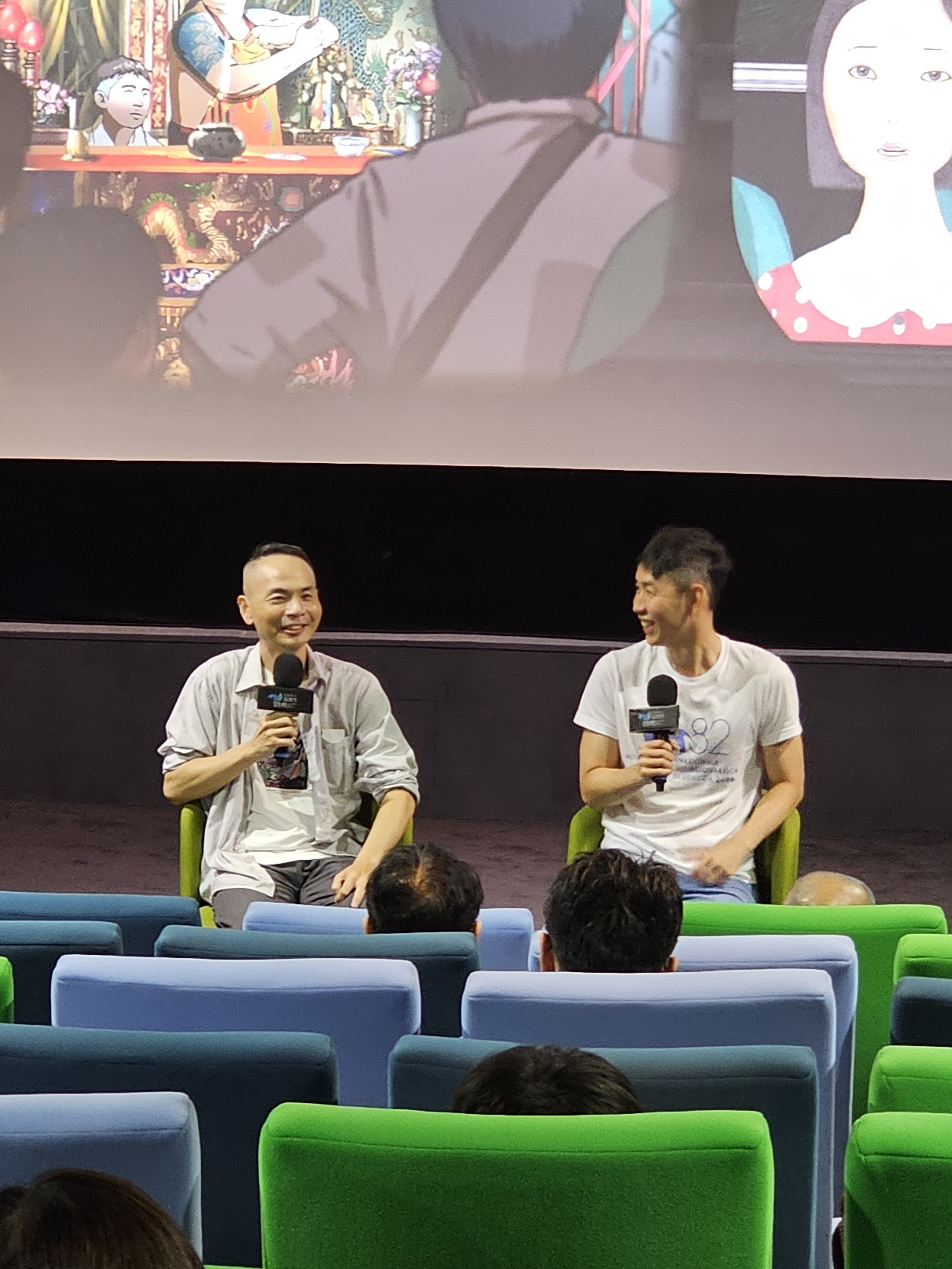 談到自己的創作,謝文明導演說,題材大多來自當下有興趣的題材。像《禮物》就源於「愛上了不對的人」(笑);《夜車》則是給自己設下表演上的挑戰。動畫要呈現角色之間的互動和化學反應並不容易,《夜車》有多個角色同場,彼此的交流需要特別細緻。他也很感謝許多前輩聲音演出的幫忙,其中還有淑芳阿姨,而他自己也替片中的工人角色配音(不是猴子!笑)。他也提到,希望新片《#螳螂》有機會能回到高雄電影節。