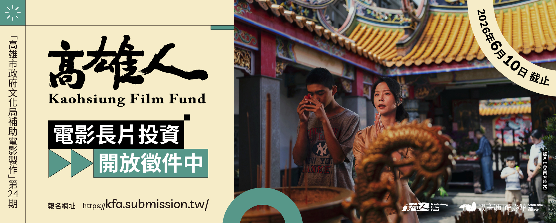 「高雄人」投資計畫即日起開放收件,至6月10日(三)截止,本期受理電影長片投資申請,影片內容須與本市有具體連結或具有足以辨識本市特色之城市意象,歡迎全台影視創作者踴躍申請,加入「高雄人」行列!