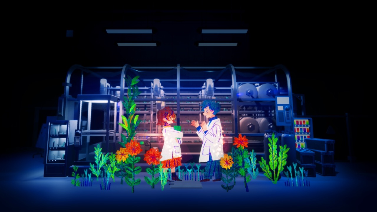 體驗者以VR手把操縱黑暗中的光束指引主角前進,同時也照射出埋藏於場景中的幻象插畫,藉此探索主角的心境。既扮演著指引者,卻也是主角內心的自我投射,將伴隨她在毀壞的地底城市找尋出路,並將代表希望的花朵帶回地表。體驗時間約為二十分鐘。