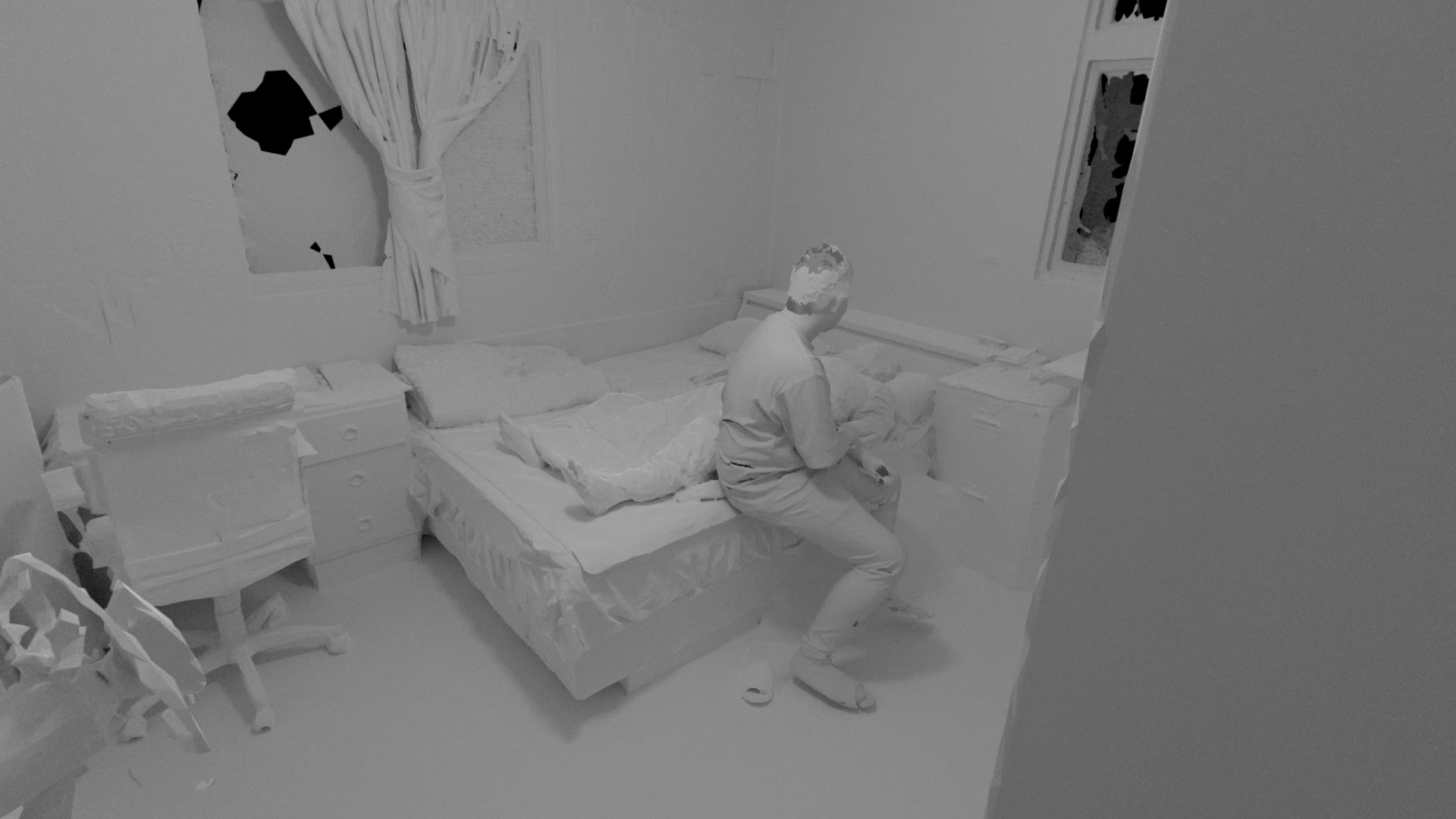 It begins with a memory from my childhood: waking up in the middle of my sleep and finding myself sitting outside the house. It felt like everything became displaced. Recent two years, I have been bothered by unusual headaches. After medical examinations, I was diagnosed with Diplopia, the so-called double vision, which was induced by the nervous system. In modern medical research, almost all perceptions and emotions can be measured in Neuroscience; they are material components of the neuro system. Without any metaphysical understanding of emotion and spirit, the concept of the soul is thus challenged.