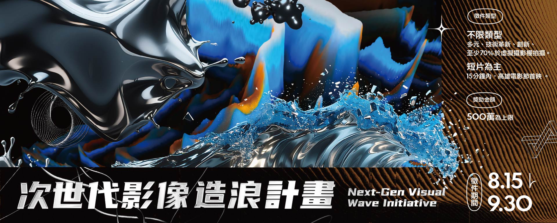 (二)申請類型:短片,不限類型,挑戰傳統實拍無法輕易達成的視覺效果(例如:特效片、奇幻、虛構場景、實驗作品),強調虛擬攝影棚拍攝短片的多元性、技術革新、實驗精神。